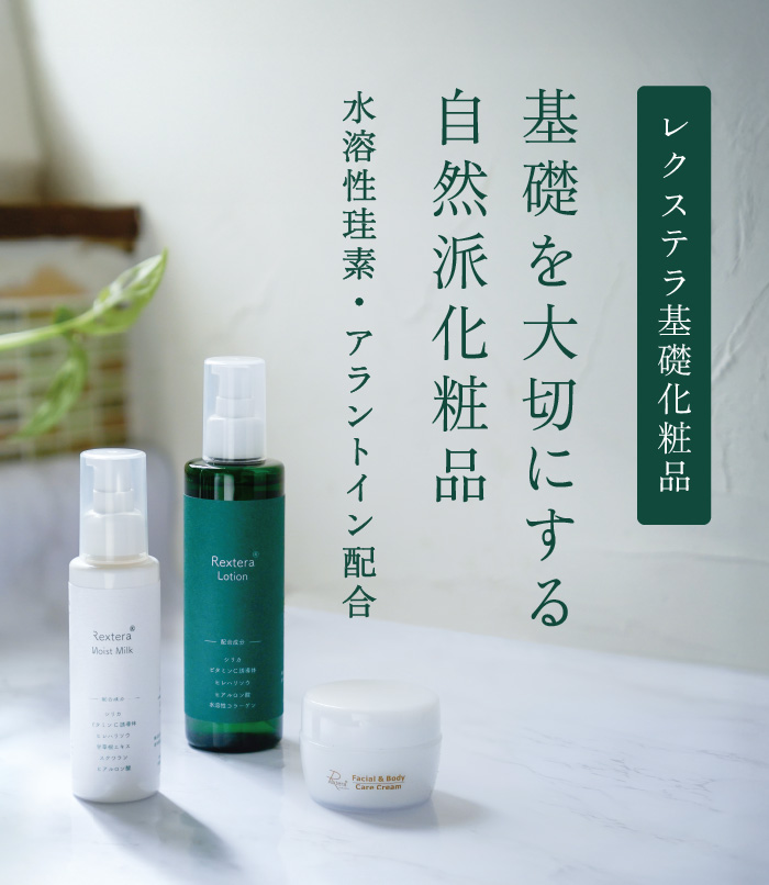 肌の水分をしっかり守る乳液と、肌をより健康に導く美容液の効果をあわせもつ美容乳液。こだわり 抜いた低刺激のシンプルな原料を使用し、合成添加物は一切不使用。美容成分に、水、ケイ素、ヒアルロン酸、カンゾウ根エキス、スクワラン、アラントインなどを配合。「レクステラ ローション」とあわせて使用することで、肌を修復し、健康に導くアラントインのダブル効果を得られ、美肌力がアップ!