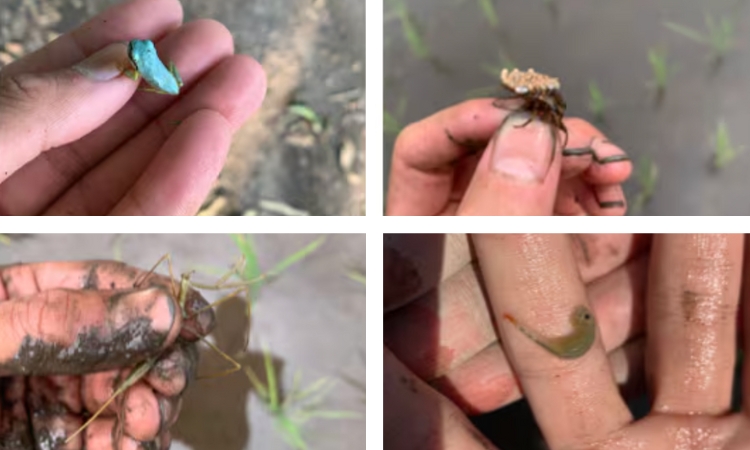 無農薬の田んぼを続けると、年々生き物は増えていきます。店主あつきさんも田んぼに関わる一生き物として、田んぼが年々ますます多様で豊かな場となるようイメージしながら、お米づくりに取り組んでいます。