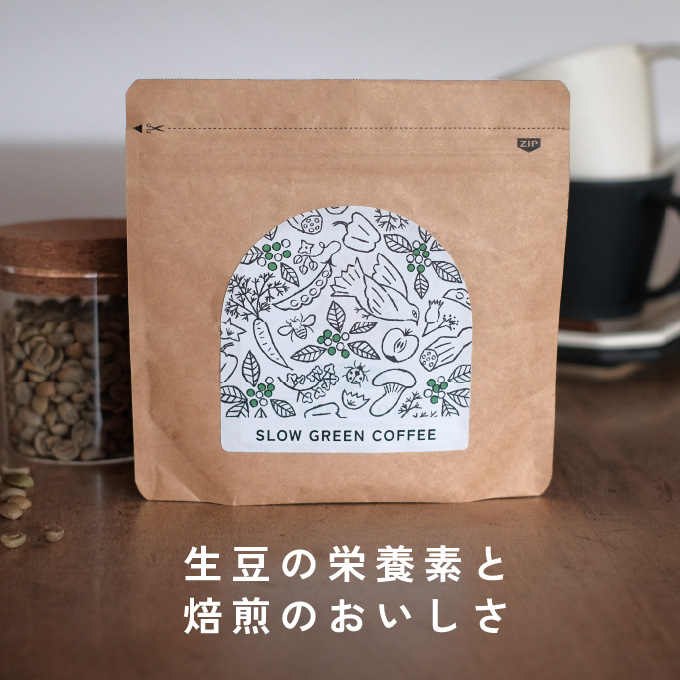 スローグリーンコーヒーでは生豆に焙煎した豆を絶妙な配合でブレンドしています。これにより生豆の栄養素+コーヒー本来のおいしさを実現しています。