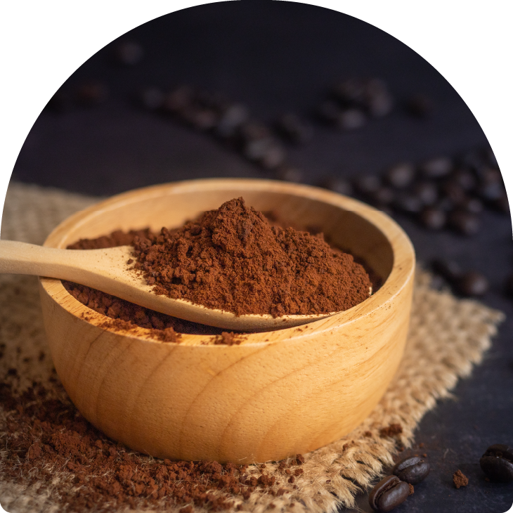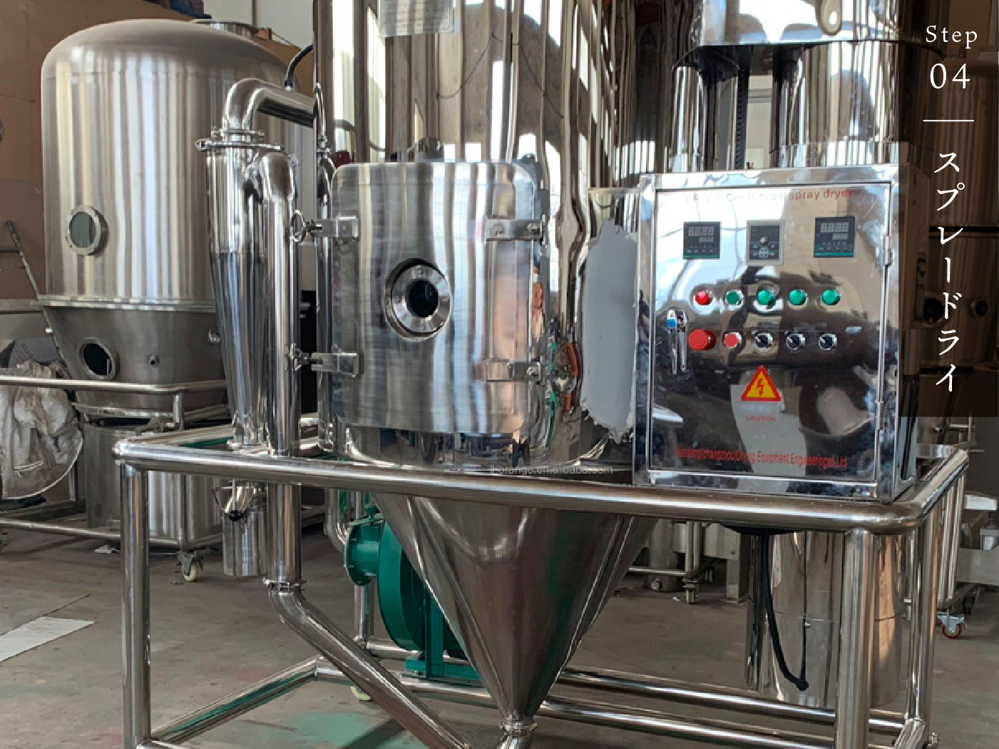 スプレードライ方式の熱風で乾燥させることで非常に細かい微粉末となり、同時に均一な顆粒状にします。この粉末は現在市場にでているコーヒーの中で最も細かい粉末となります。