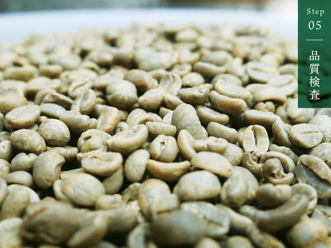 乾燥したコーヒー豆は色むらなどの欠陥を人の目で確認します。不具合のある豆は手作業で取り除かれ、最高品質のコーヒー豆だけが残ります。