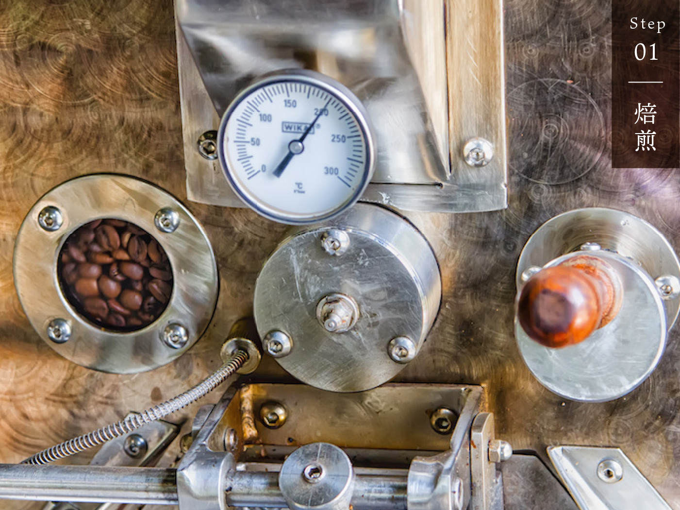 焙煎作業では微妙な温度コントロールと焙煎具合のタイミングによってコーヒー豆の味と香りを引きします。色の変化に合わせて豆の中の香ばしい油分が表面に出てきます。焙煎後、冷風または水で冷却されます。