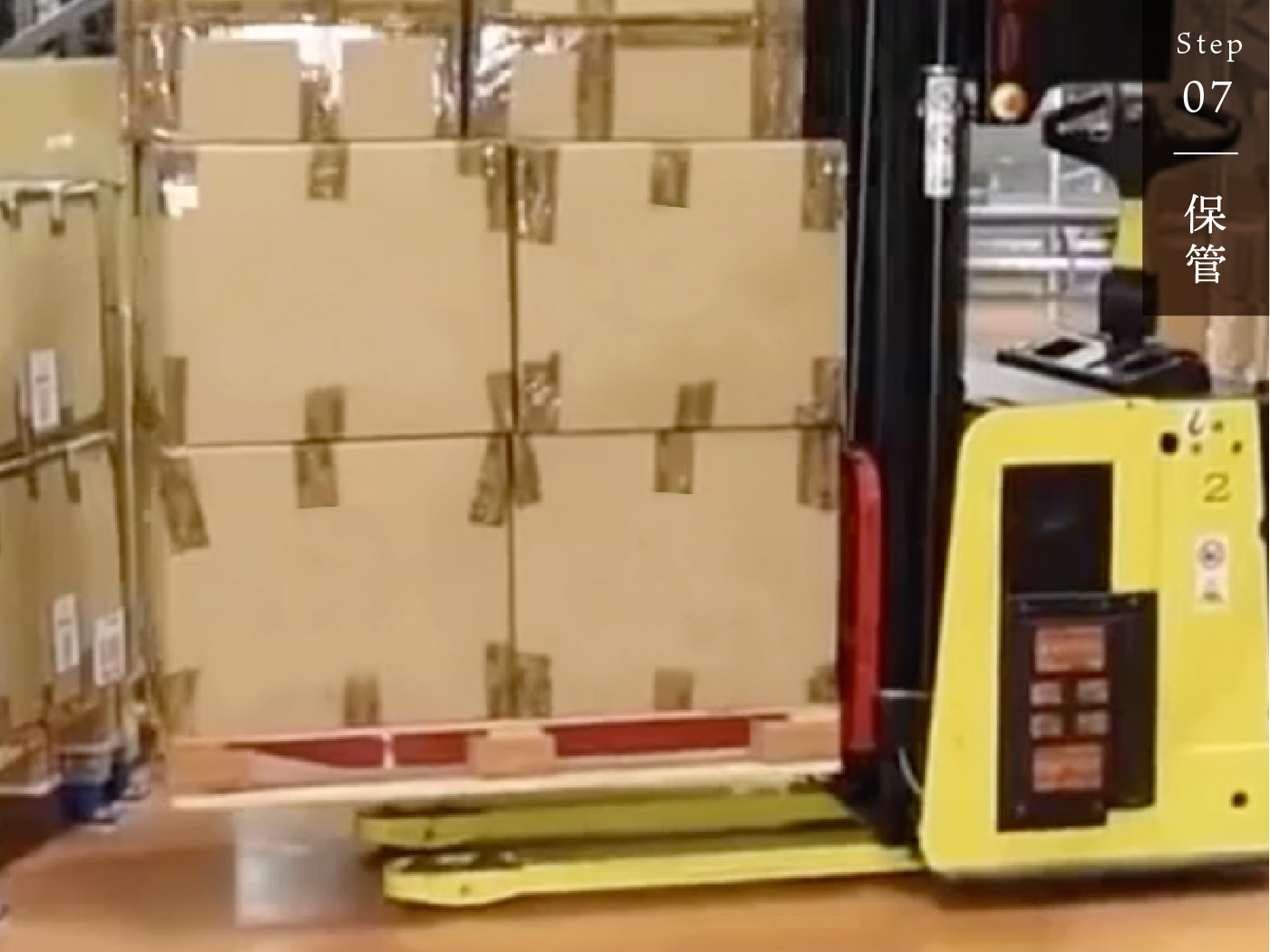 できあがった製品はお客さまにお届けするまで温度管理された倉庫で保管します。これにより鮮度・味・香りが確実に維持されます。
